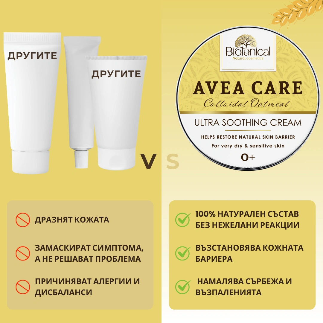 Сбогом на сърбежа, зачервяванията и усещането за парене. Благодарение на клинично доказаната сила на колоидния овес, този крем успокоява раздразнената кожа, възстановява нейния баланс и създава естествен защитен слой, който предпазва от бъдещи възпаления. Екстрактът от невен допълнително успокоява и намалява чувствителността, докато жълтият кантарион подпомага естественото заздравяване. Формулата прониква в дълбочина, като облекчава дискомфорта още от първото нанасяне. Без лимонена или млечна киселина, този крем не дразни и не предизвиква неприятно щипане, което го прави идеален за най-чувствителната кожа – дори и за бебета.
